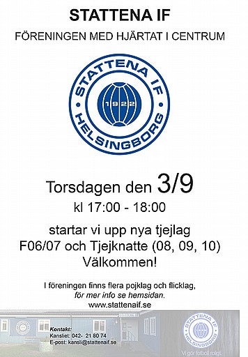 Kom med i Stattenas nya grupp för pojkar och flickor födda 2019, 2020 och 2021!