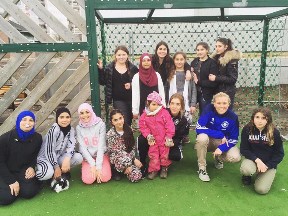 Deltagande tjejer i onsdags i projekt "Tjejfotboll"