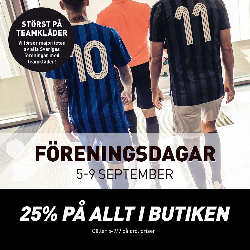 Tillsammans med Intersport bjuder vi in dig till föreningsdagar 5-9 september på Intersport. Få 25% rabatt på hela sortimentet i butiken eller på intersport.se. Visa upp detta inlägg i butiken för att erhålla rabatten eller använd följande rabattkod: 99818362 på intersport.se.