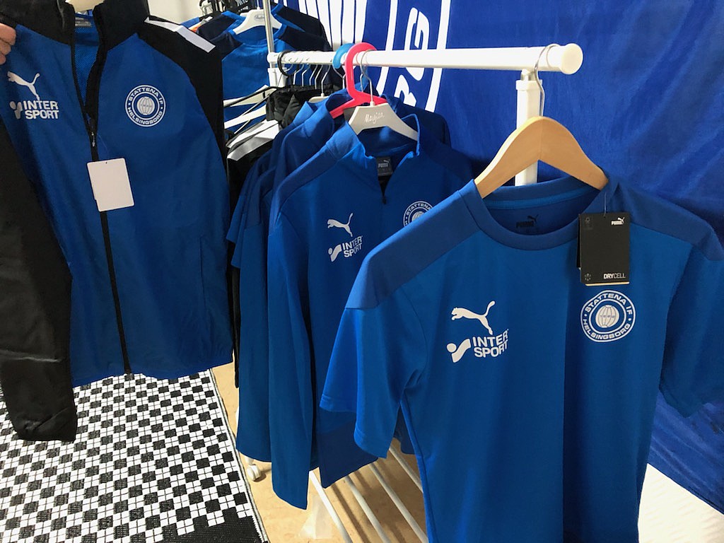 Alla plagg utom träningsbyxor, shorts och strumpor har Stattenas klubbmärke och du kan få tryckt ditt namn på kläderna.